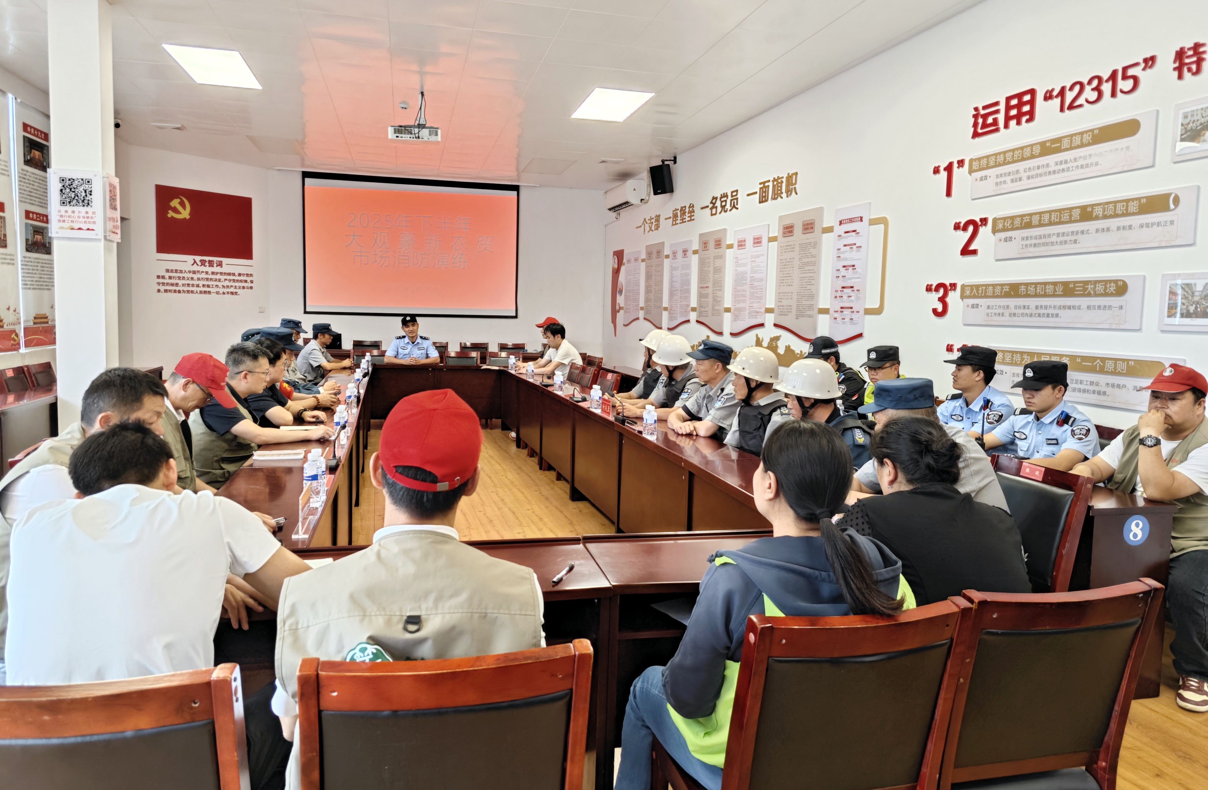 8月25日,大觀篆新農貿市場開展一場貼近實戰的反恐防暴應急演練,大觀派出所、轄區街道辦事處及市場保安共30余人參加。