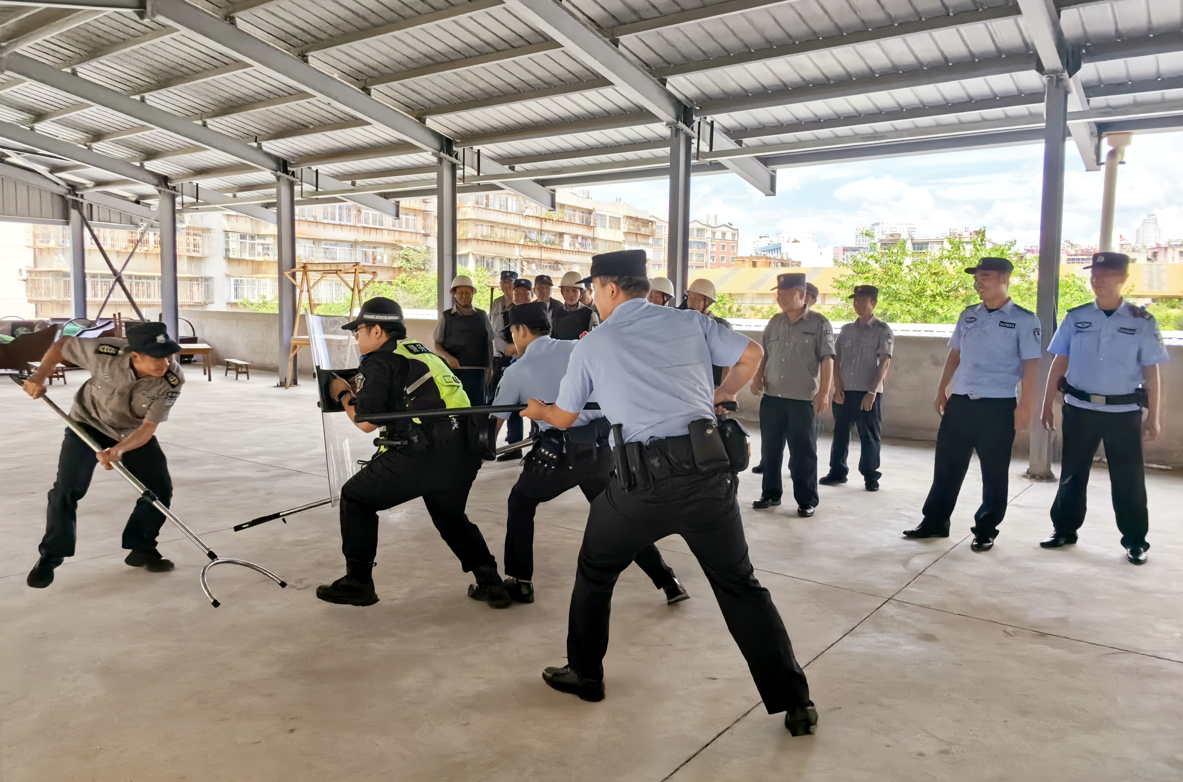 演練結束后,大觀派出所民警還對市場保安人員就防暴器械的正確使用、團隊協作及自我防護等技能進行了現場培訓指導。