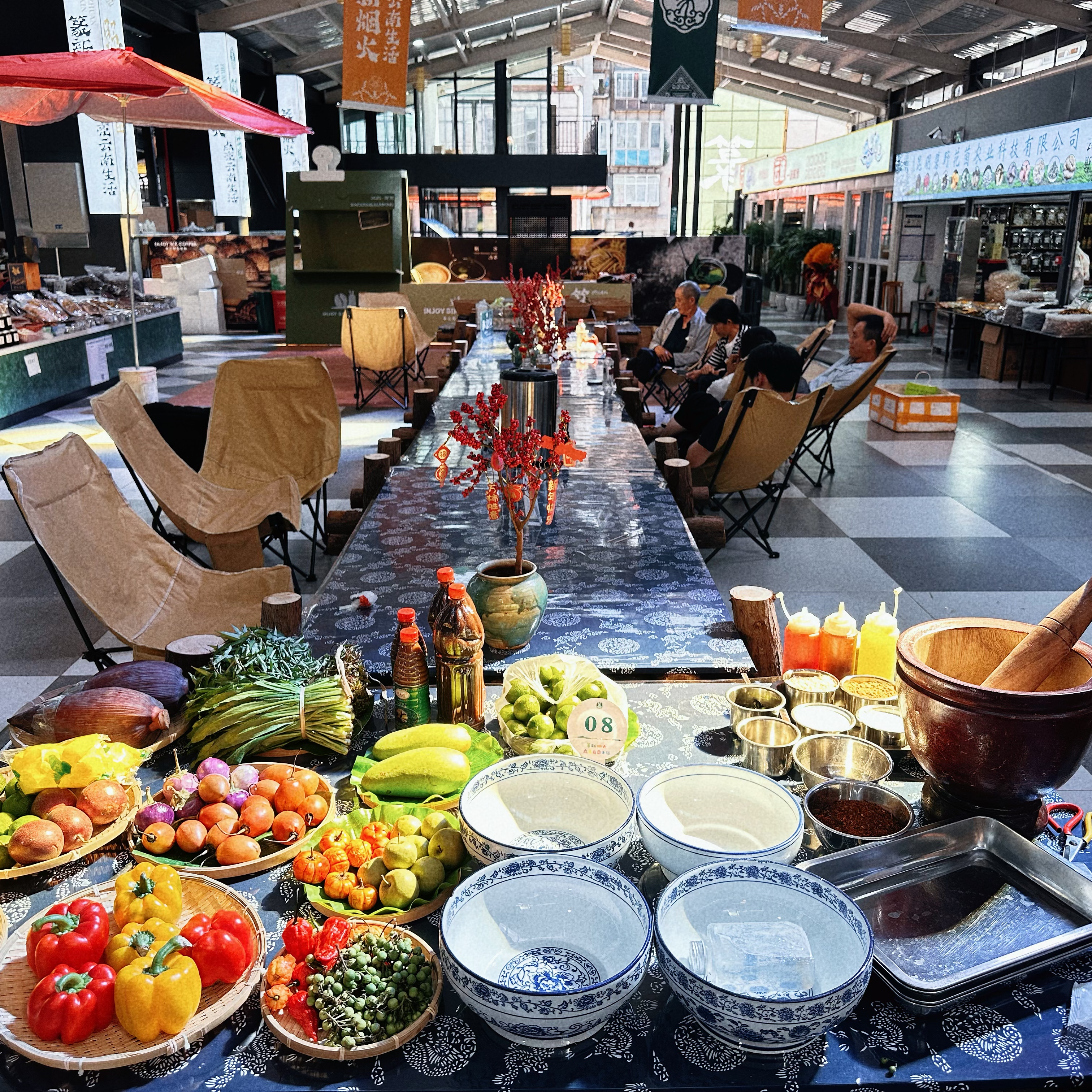 熟食區更是香氣四溢,牛干巴、鹵味、米線、手抓飯熱氣騰騰,讓人食欲大開。
